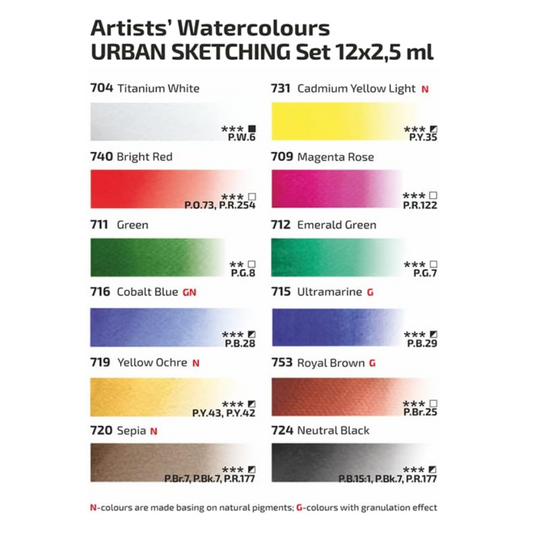 Rosa Gallery "Urban Sketching" Watercolour Set of 12 Pans