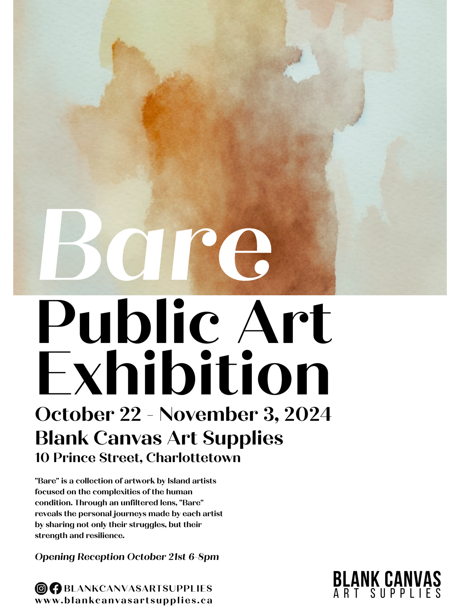 “Bare” is a collection of artwork by Island artists that focuses on the complexities of the human condition. This exhibition invites viewers to explore themes of identity, vulnerability, and emotion in a safe public space. Through an unfiltered lens, “Bare” reveals the personal journeys made by each artist by sharing not only their struggles, but their strength and resilience.
