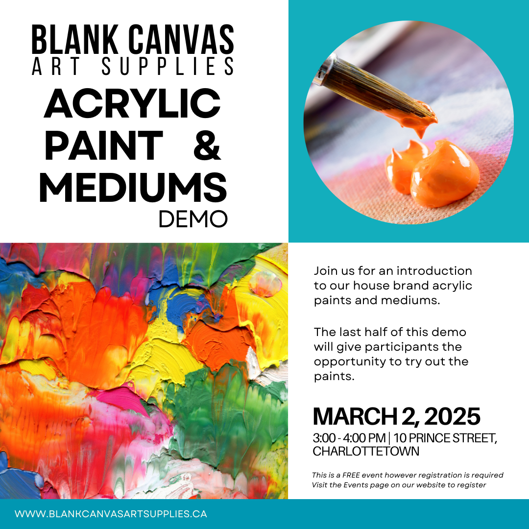 Join us for an introduction to our house brand acrylic paints and mediums. The last half of this demo will give participants the opportunity to try out the paints.