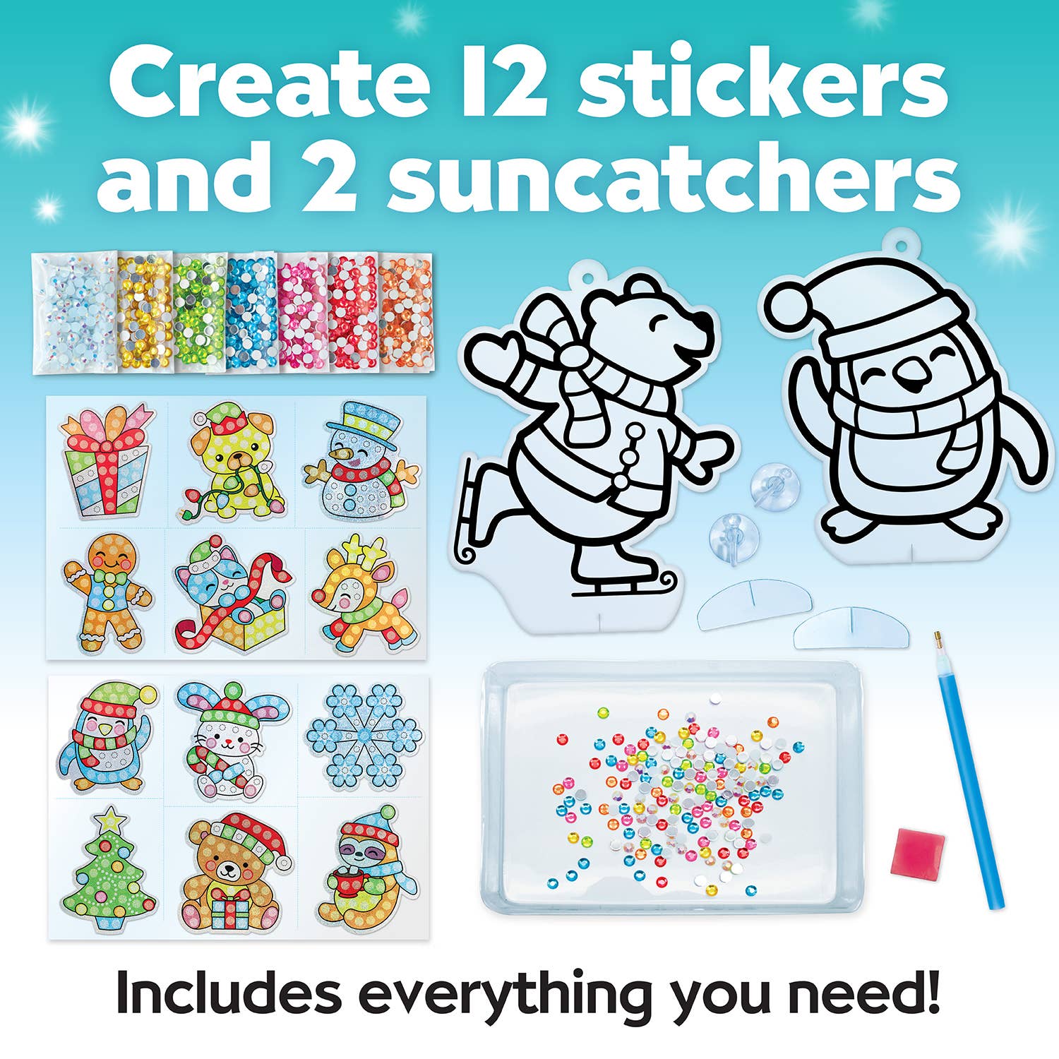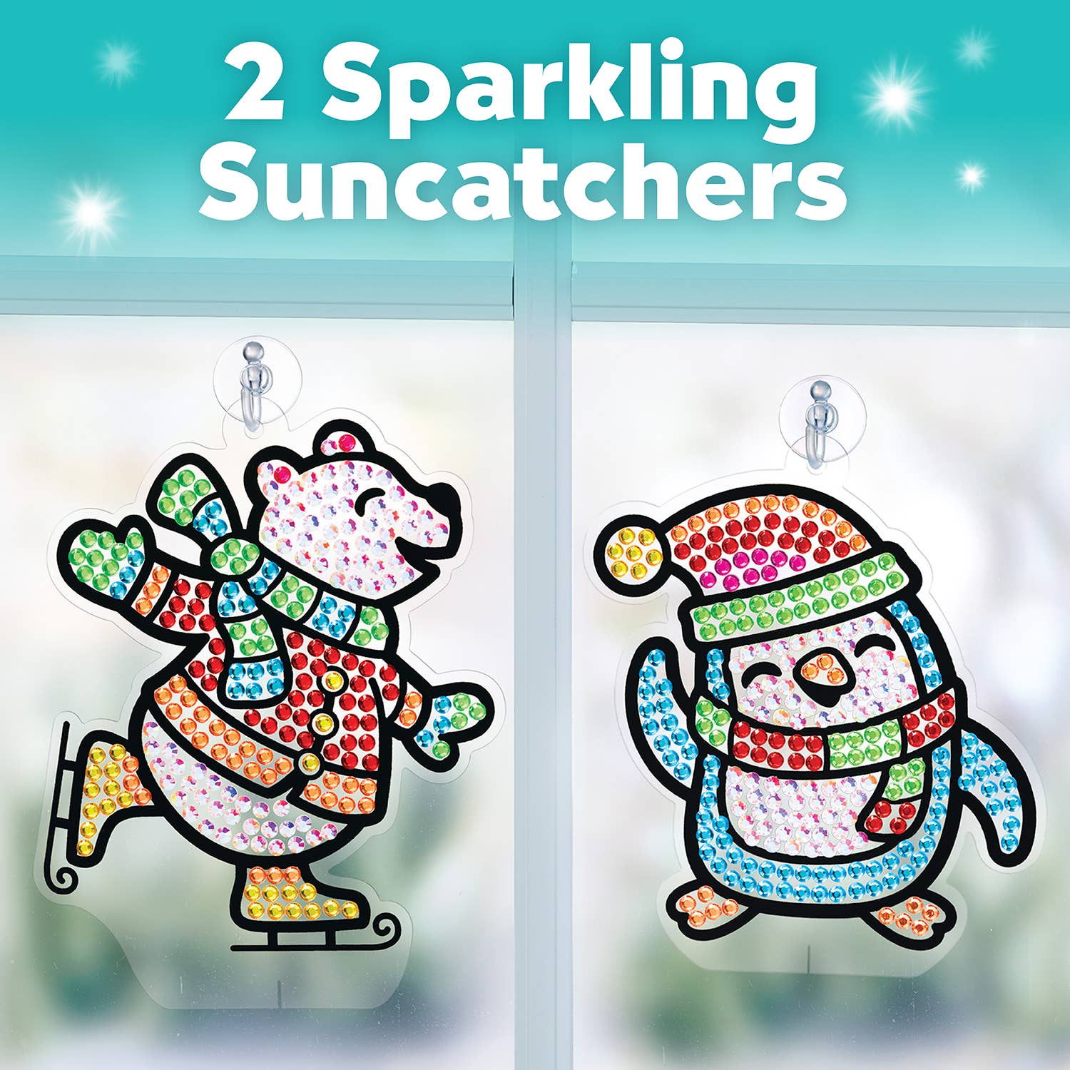 Everything you need to complete this festive craft is included, just add imagination and creativity! Comes with 1000+ colorful gems, 12 holographic stickers (2x2”), 2 sun catcher designs (6 ½” tall), 2 suction cups, 2 sun catcher stands, a gem tray, diamond painting stylus, wax square for stylus and instructions.