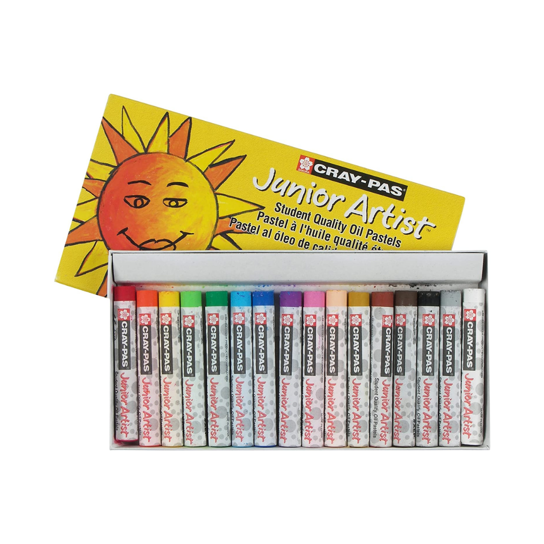 Invented in 1921, Sakura is the original inventor of oil pastels. Cray-Pas® Junior Artist® provides beautiful and blendable colour for young hands. The best art curriculums nationwide use Cray-Pas to teach and practice art introductory techniques. Cray-Pas oil pastels can create oil paint effects, will not peel, crack or flake, are easily blendable, and are safe for children. The round shape of Cray-Pas Junior Artist is easy to hold, and are great for drawing, lettering, scratch art, and long lasting sidewalk art. A special chubbie size stick of Cray-Pas Junior is also available for little hands to grasp. Cray-Pas are excellent on paper, cardboard, and canvas.