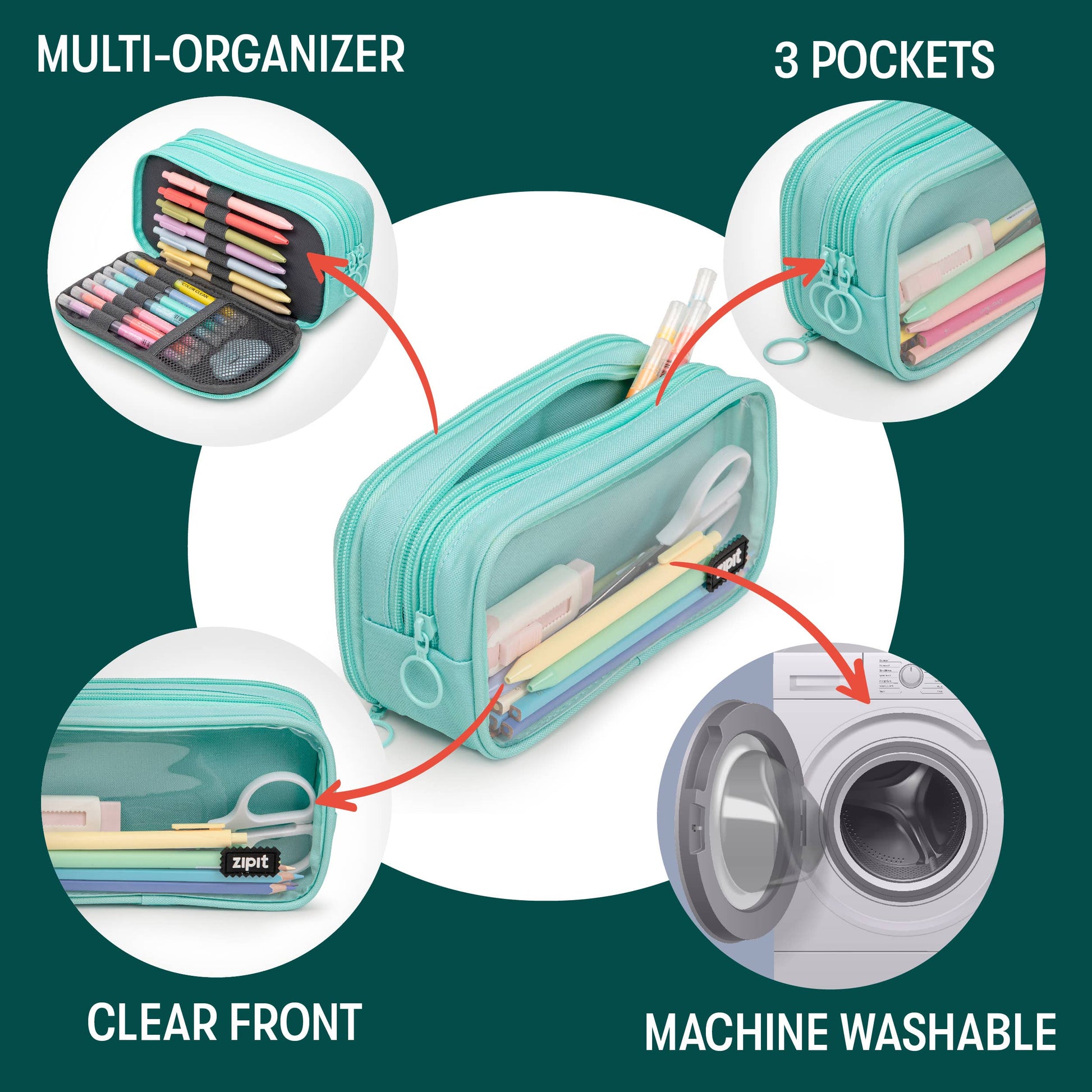 ZIPIT Half & Half Pencil Case, Aesthetic Pouch: Mint